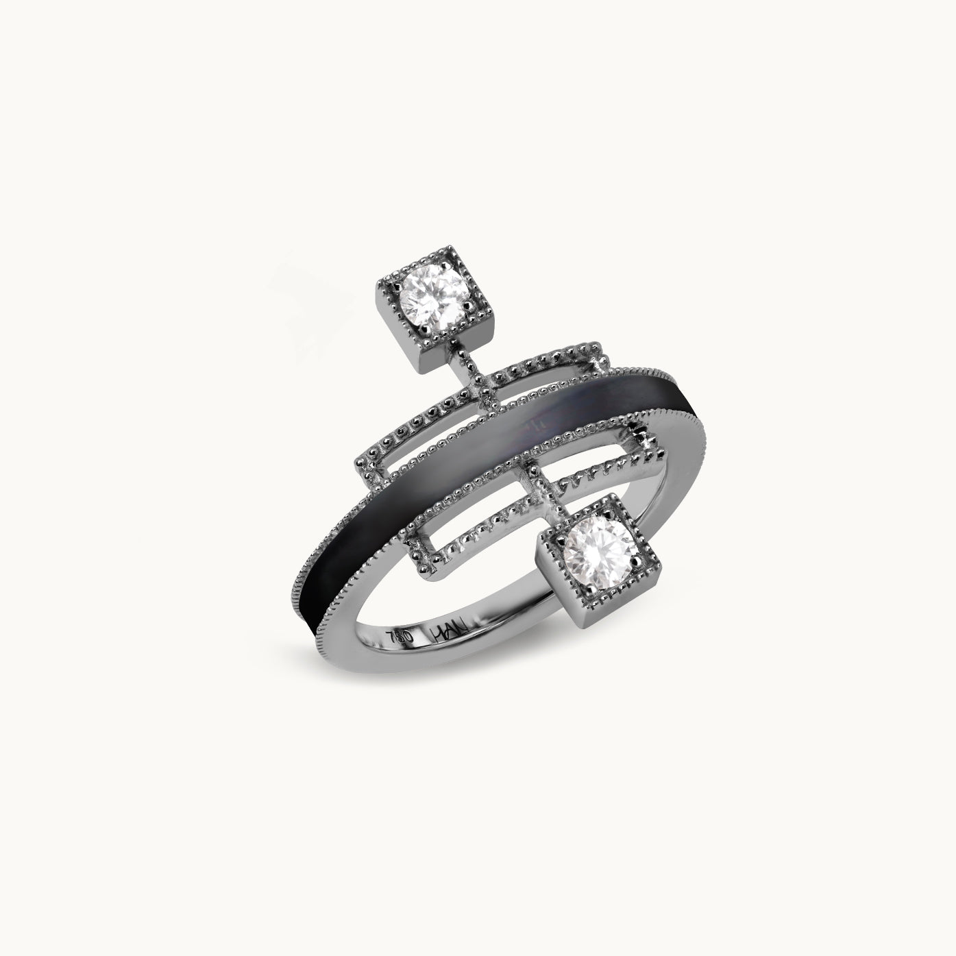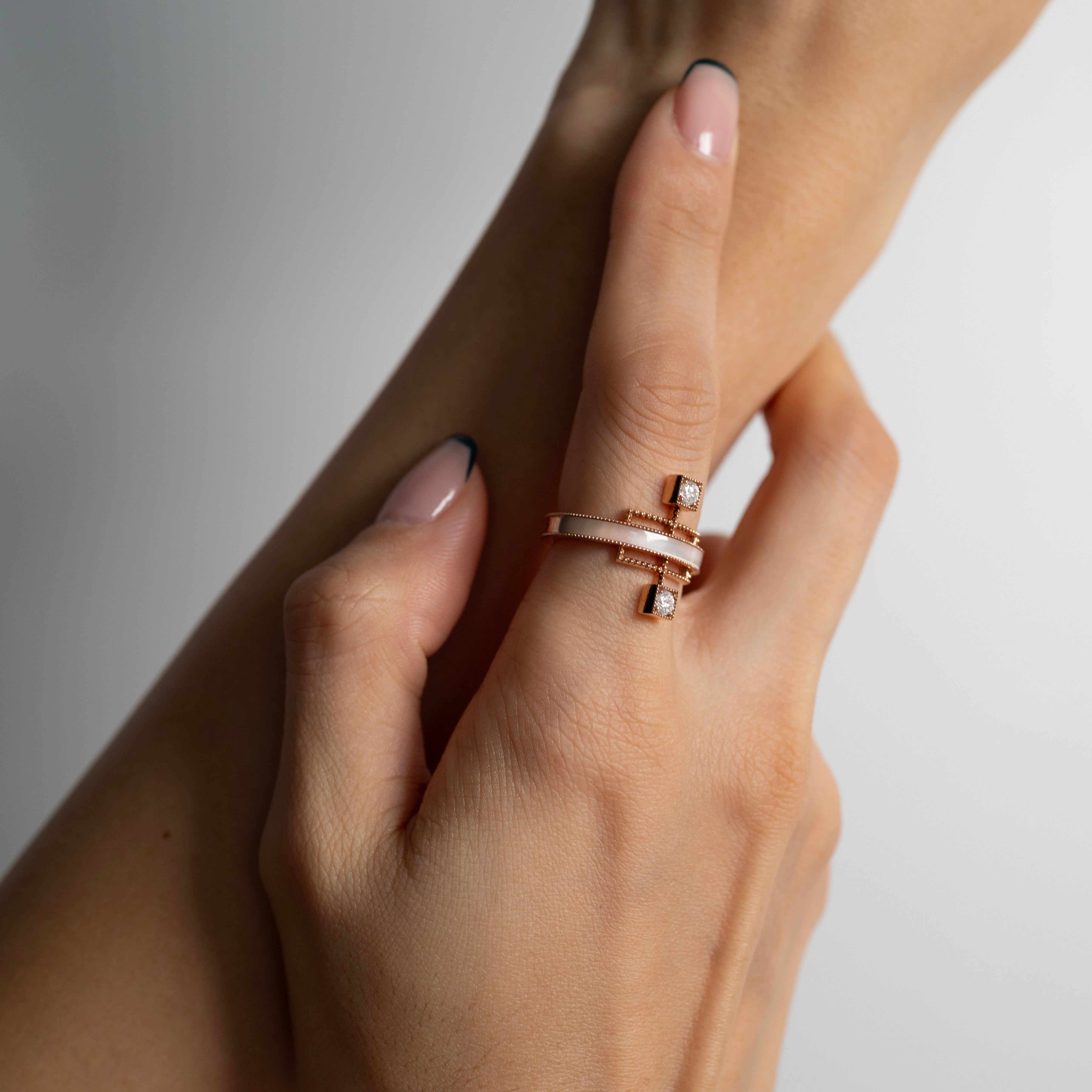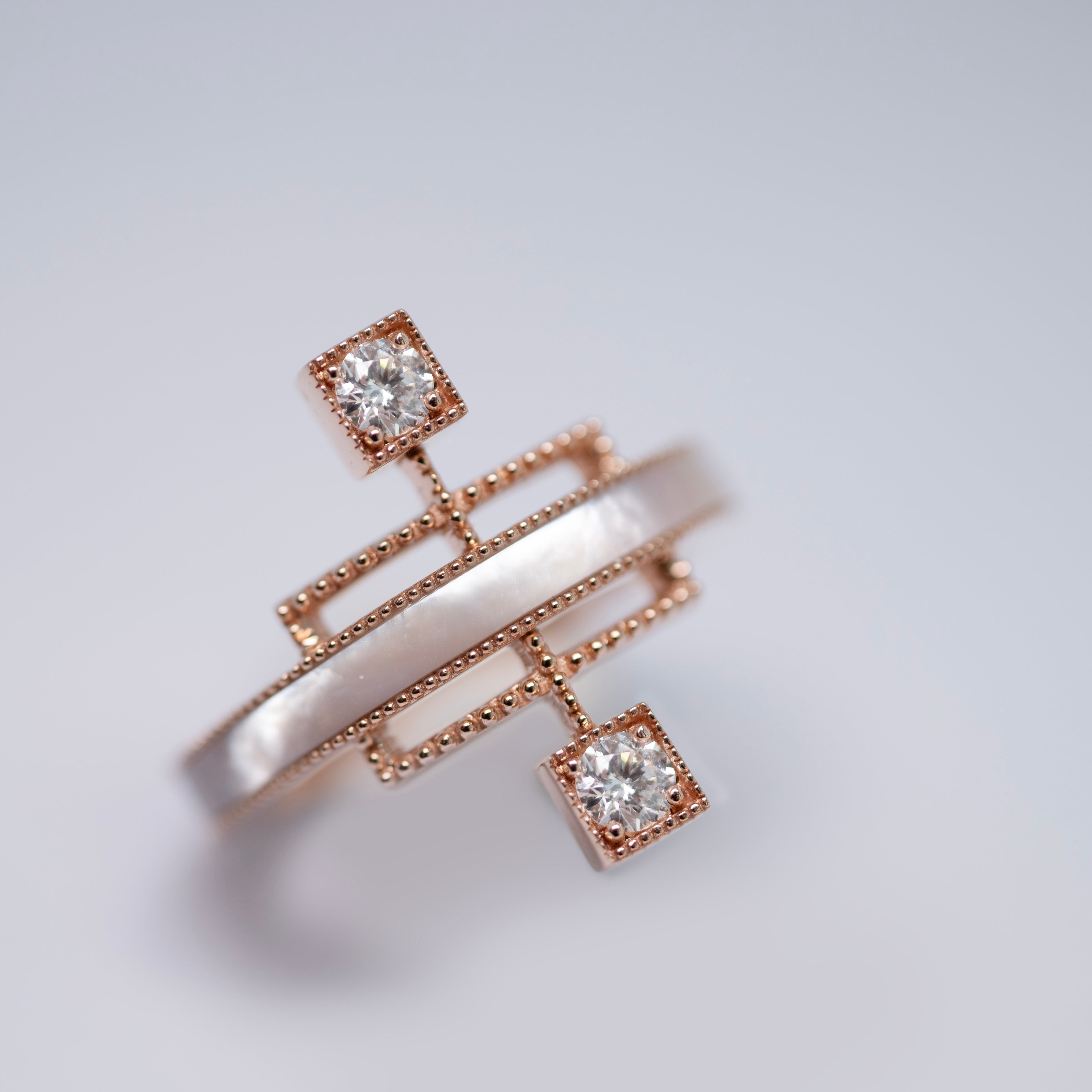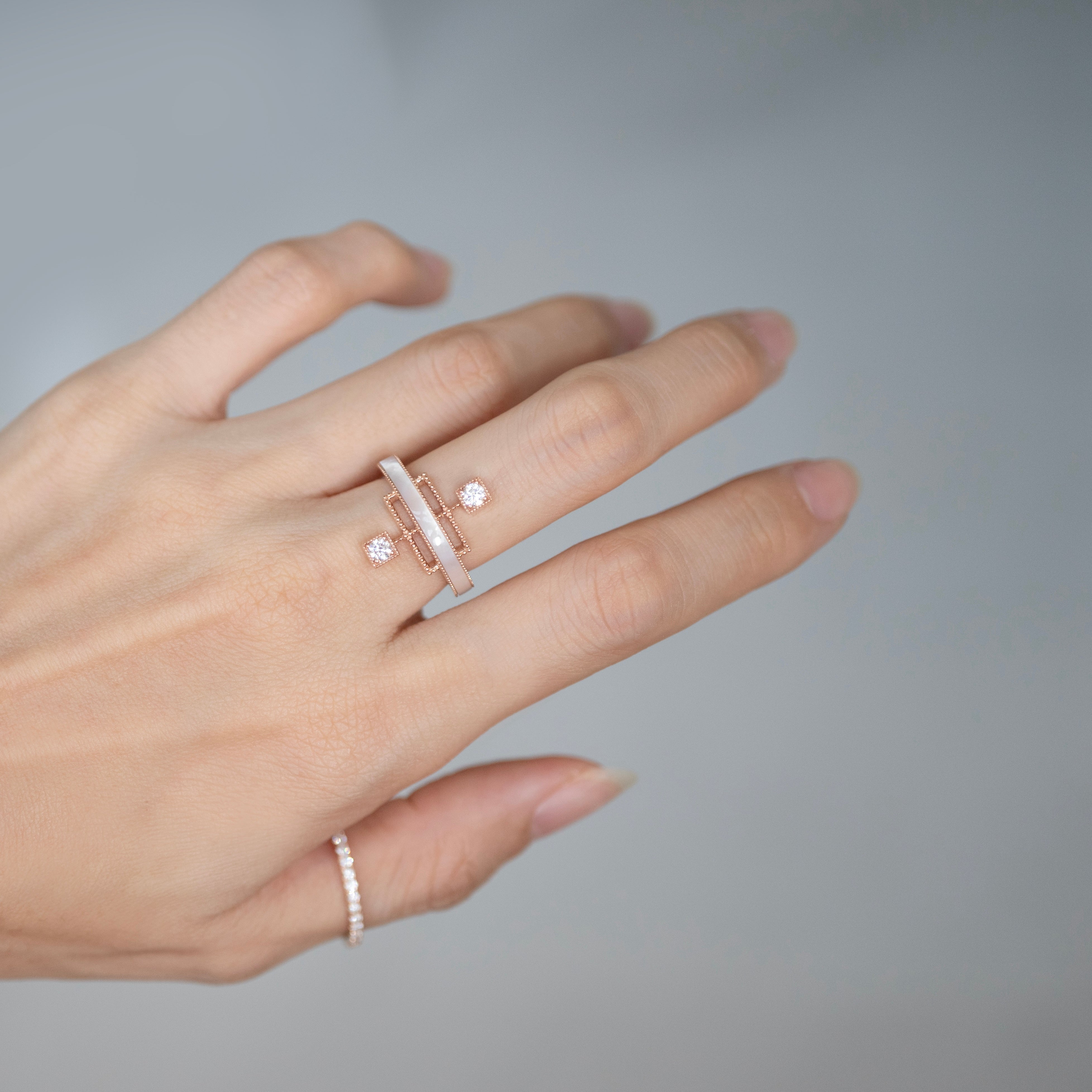 Echoing the linear beauty of traditional Korean door frames, Grid Ring reinterprets architectural rhythm in a modern Art Deco form. A carved gemstone flows like light along the restrained lines; like a beam crossing a solid frame, it radiates elegant tension and refined sophistication in a fine jewellery form.