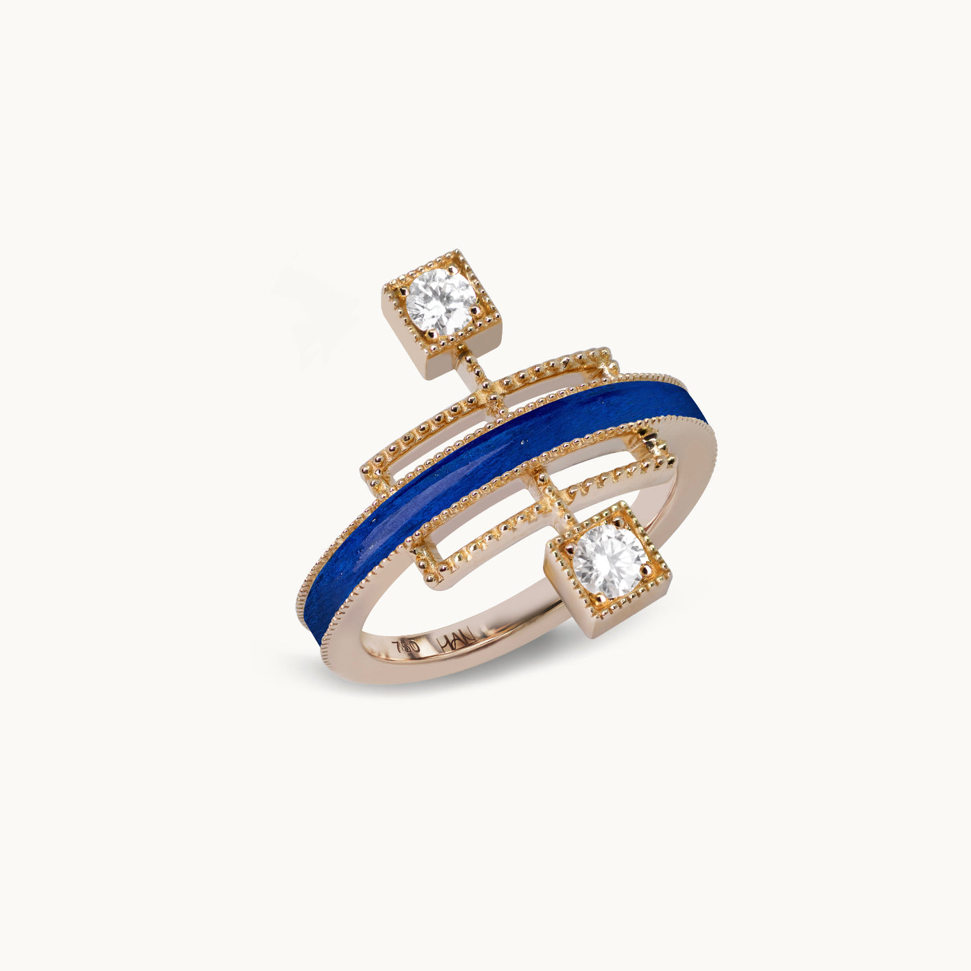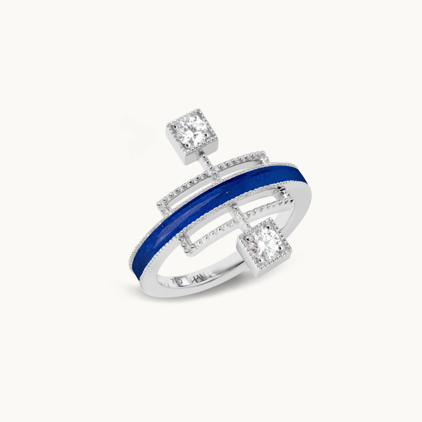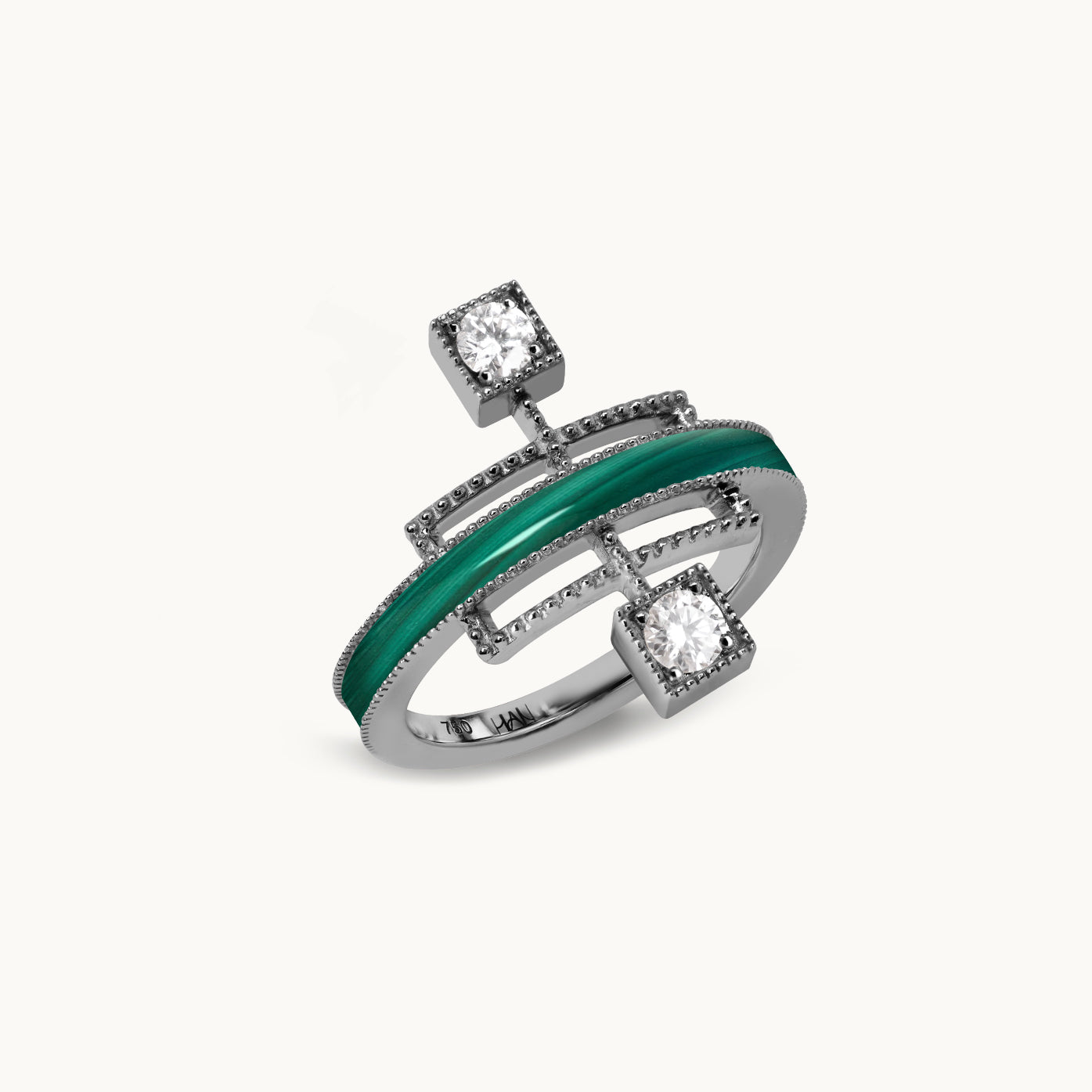 Echoing the linear beauty of traditional Korean door frames, Grid Ring reinterprets architectural rhythm in a modern Art Deco form. A carved gemstone flows like light along the restrained lines; like a beam crossing a solid frame, it radiates elegant tension and refined sophistication in a fine jewellery form.