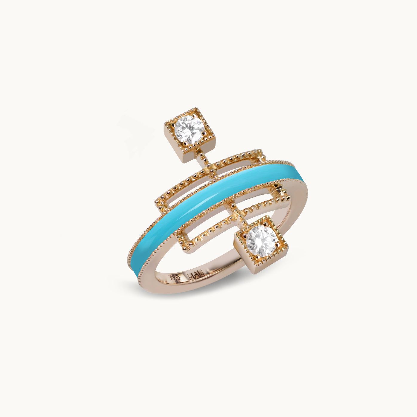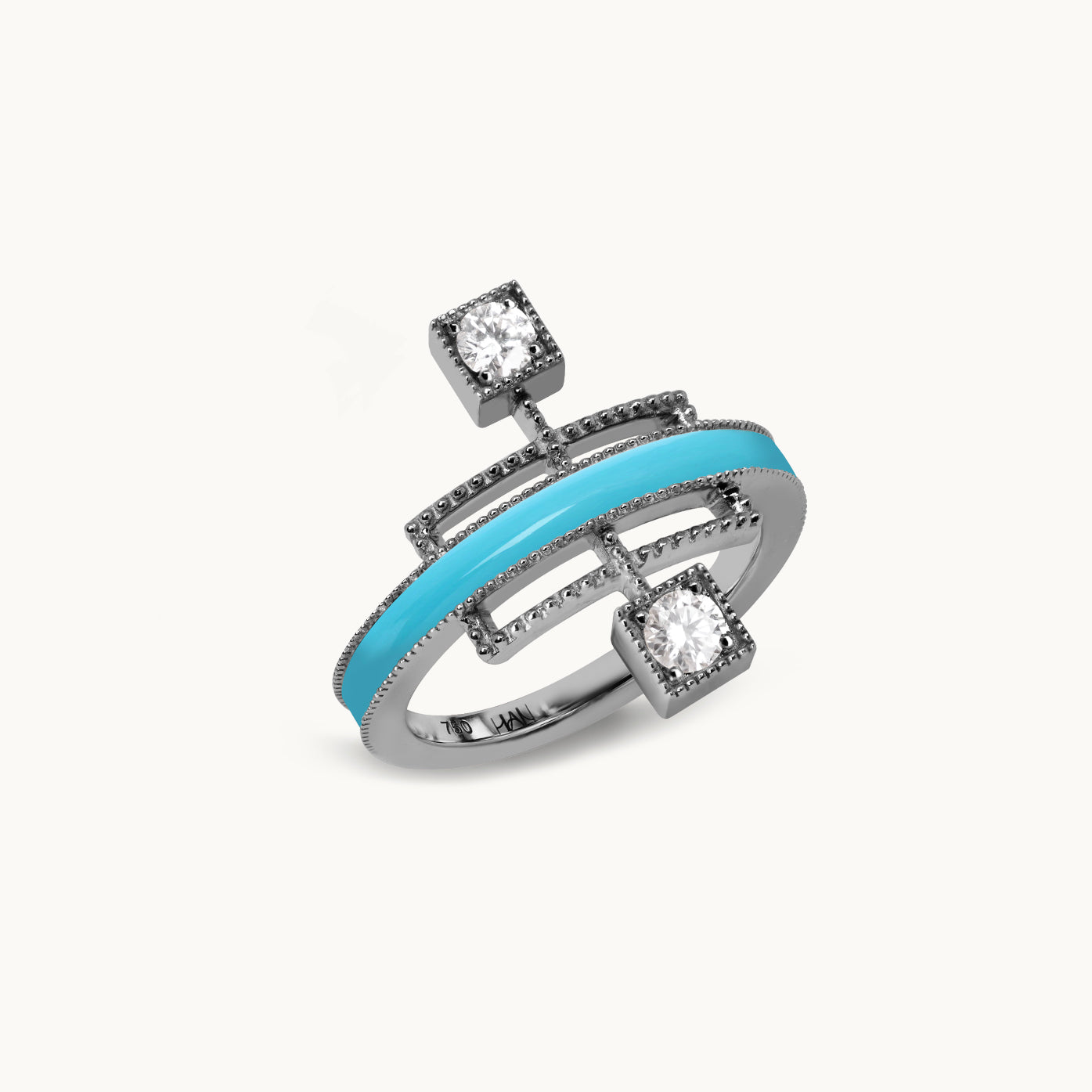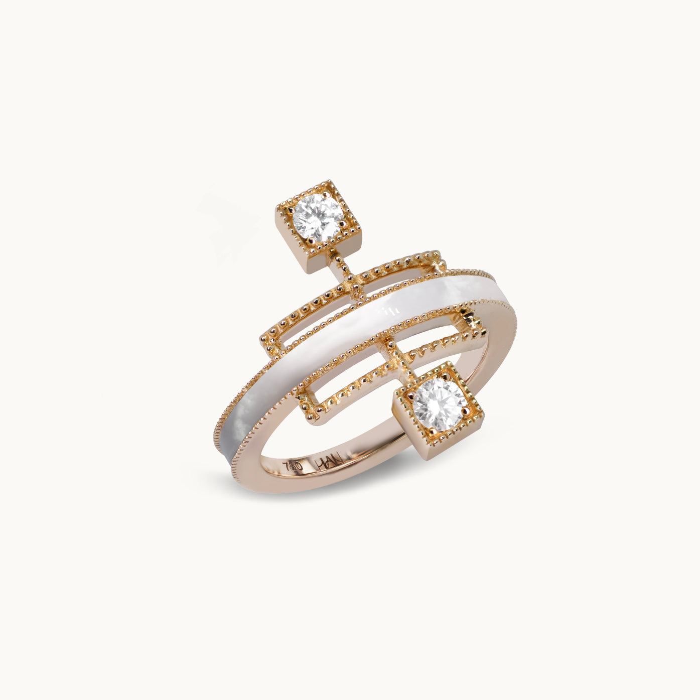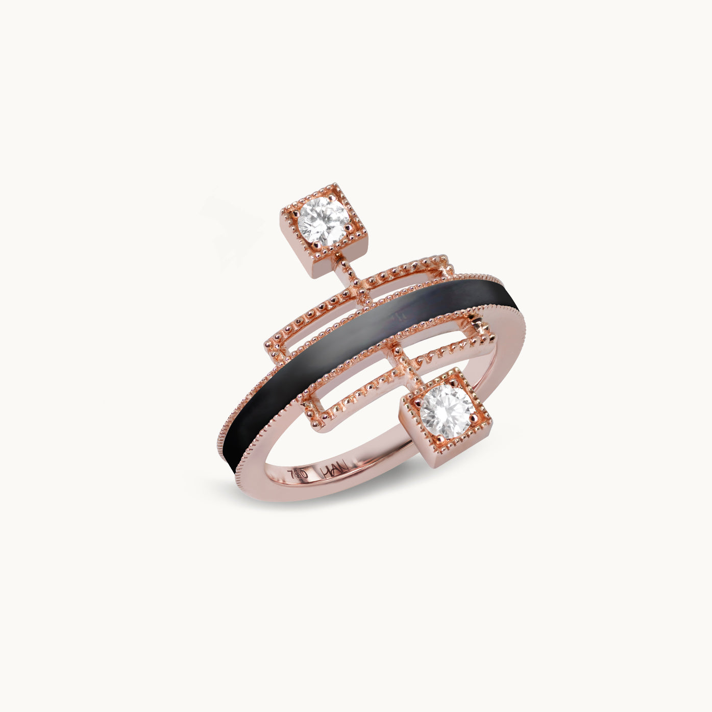 Echoing the linear beauty of traditional Korean door frames, Grid Ring reinterprets architectural rhythm in a modern Art Deco form. A carved gemstone flows like light along the restrained lines; like a beam crossing a solid frame, it radiates elegant tension and refined sophistication in a fine jewellery form.